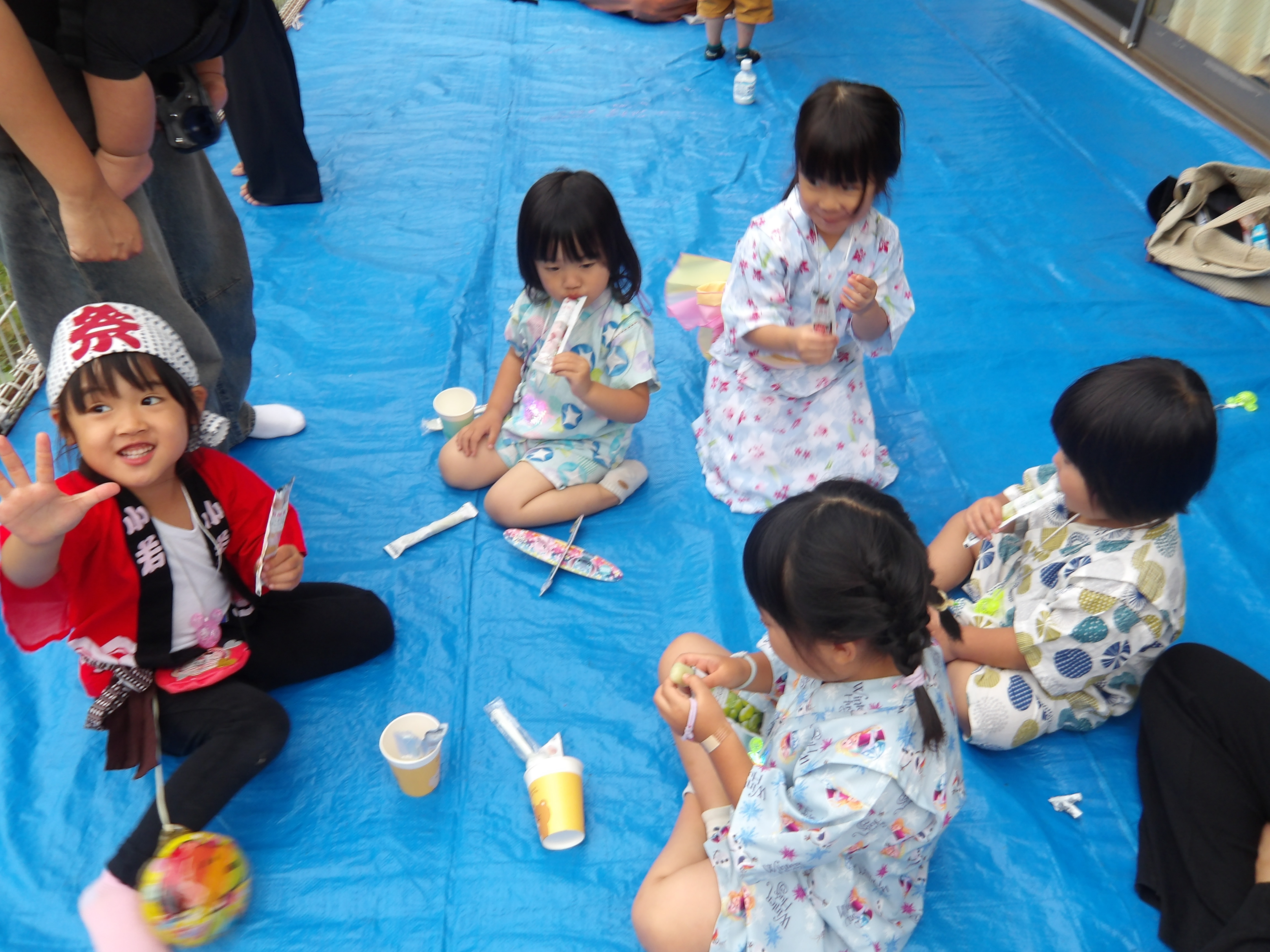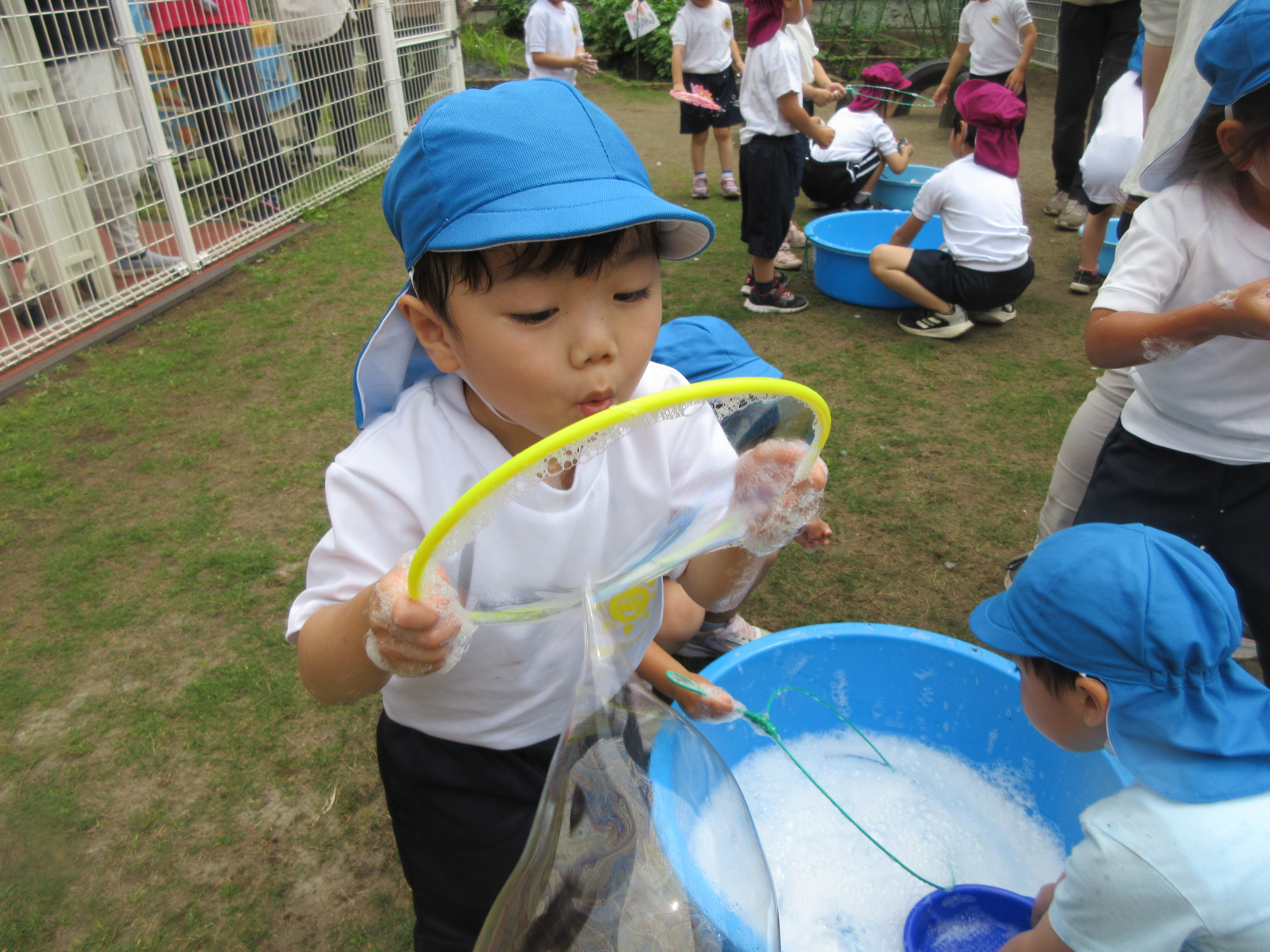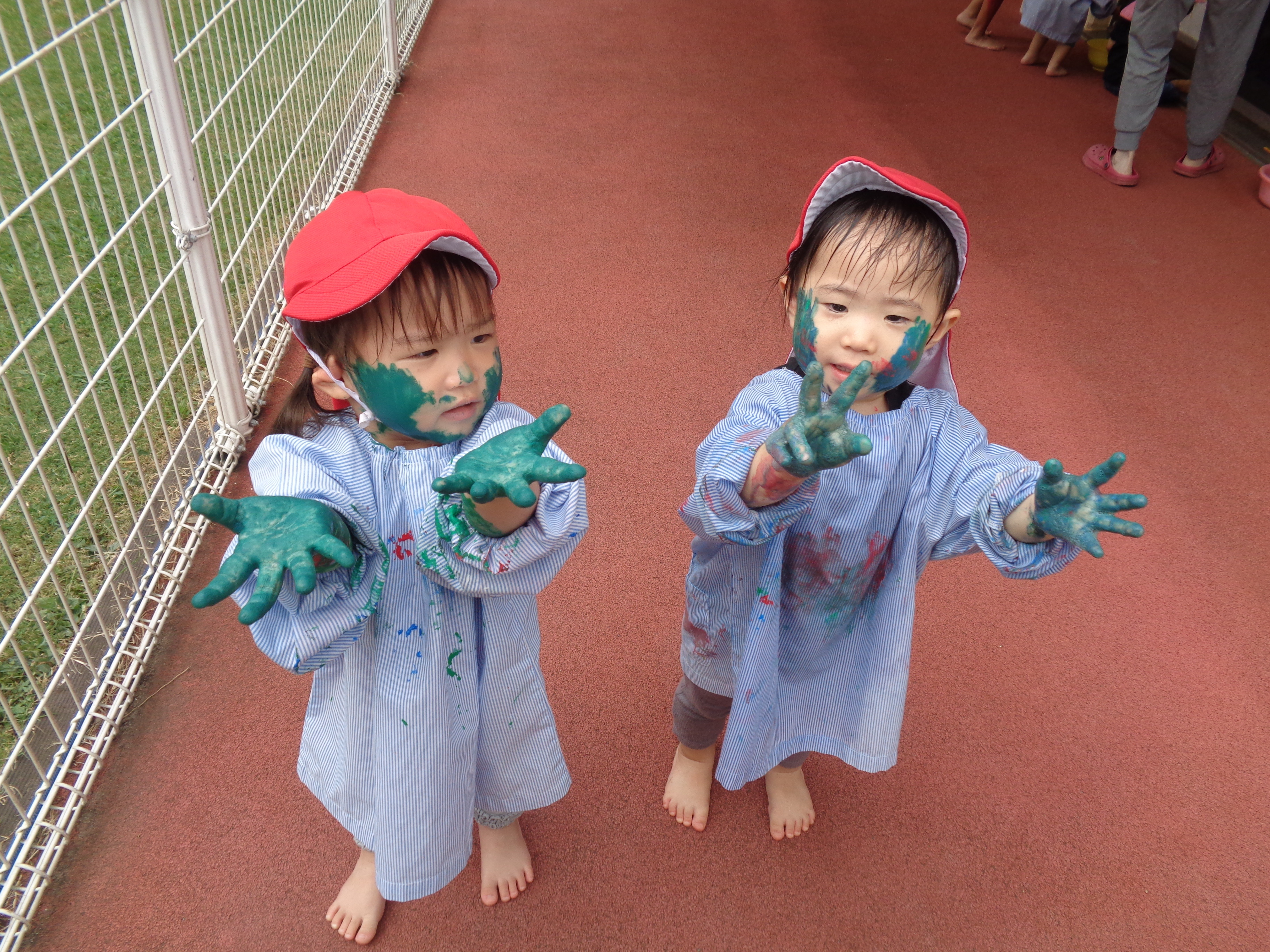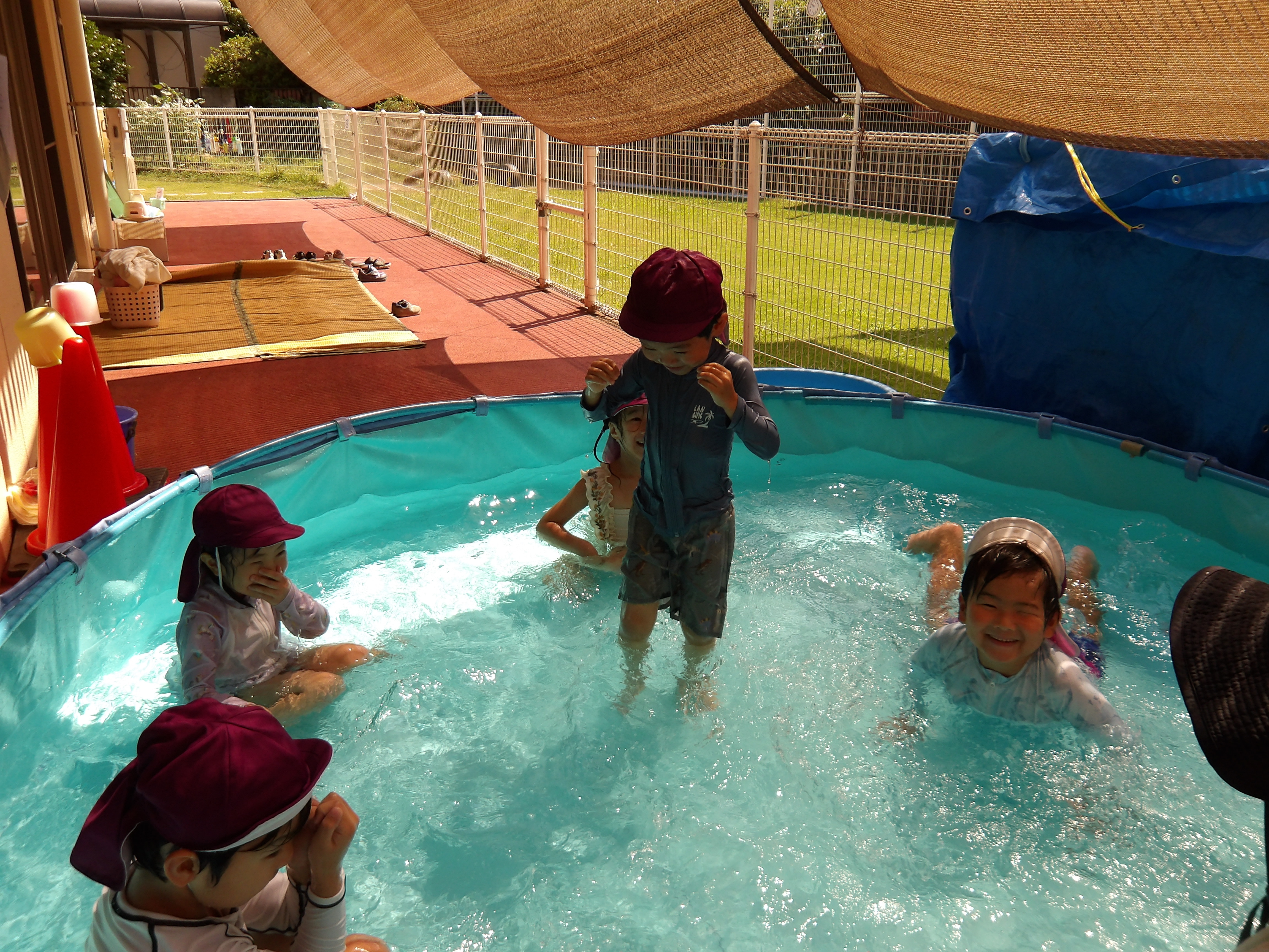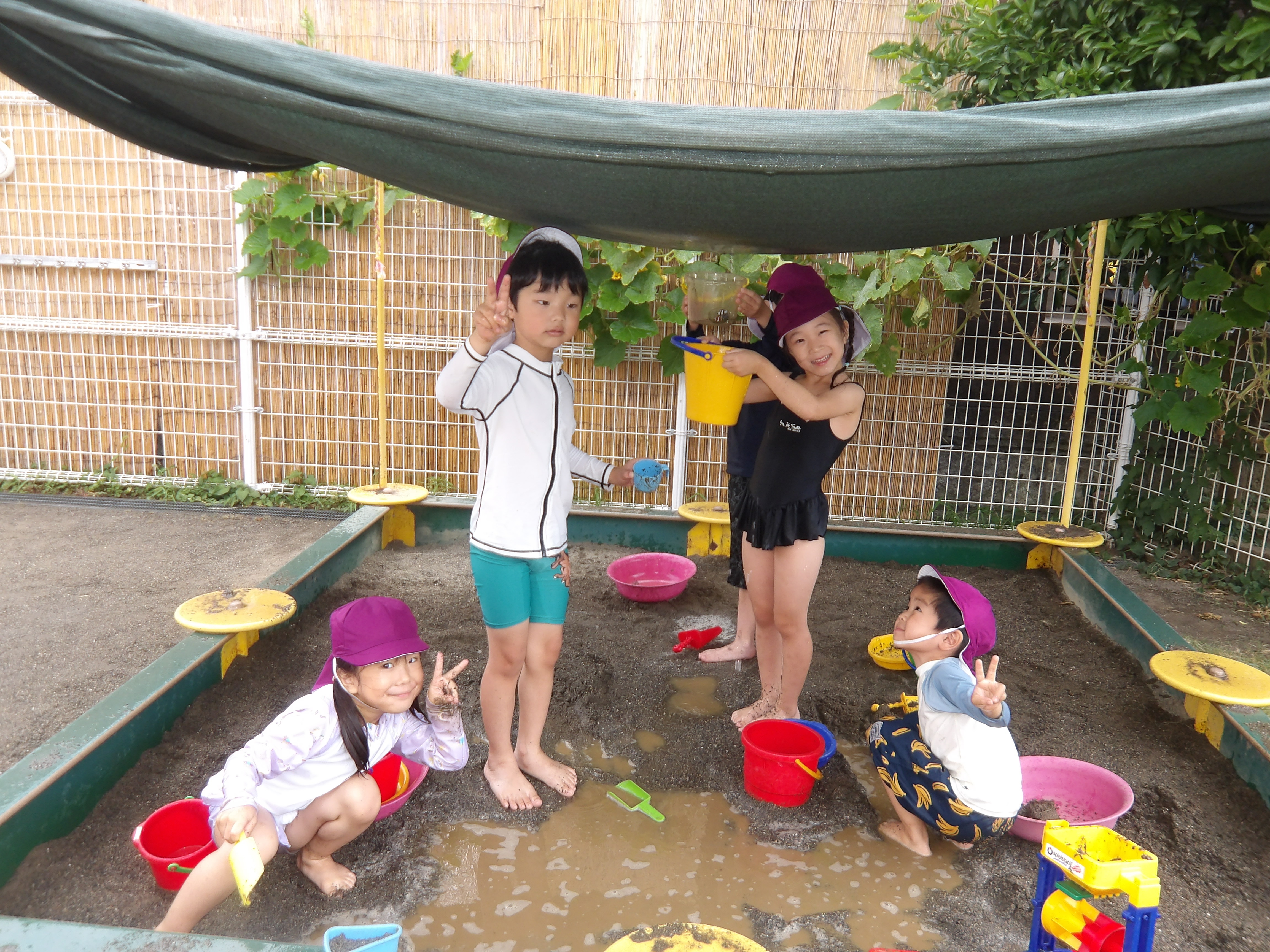 プール、水遊び、泥んこ遊び、寒天遊び、色水遊び、シャボン玉、フィンガーペインティング、ボディペインティングなどなど、子どもたちの笑顔がたくさん見られましたよ。