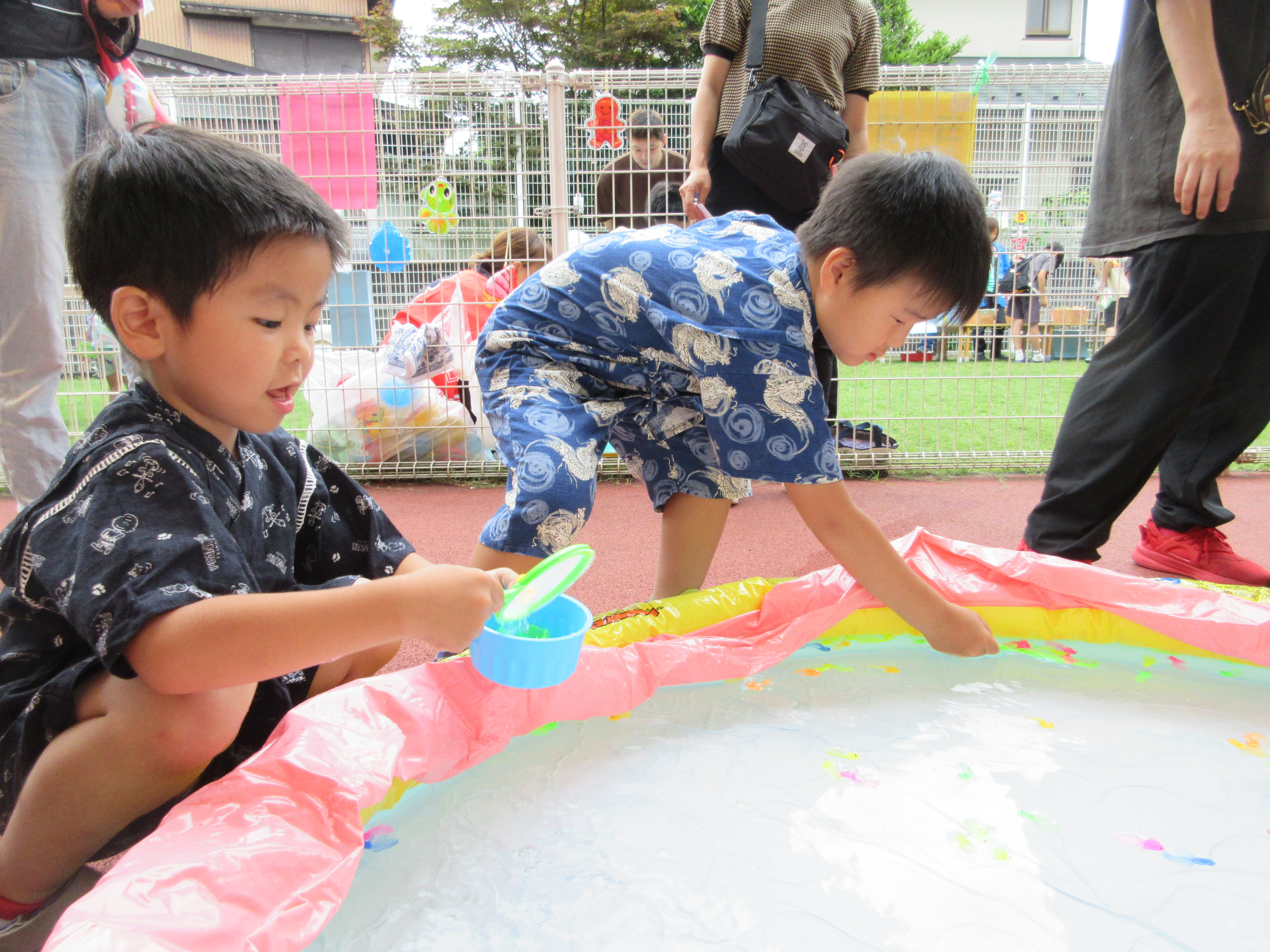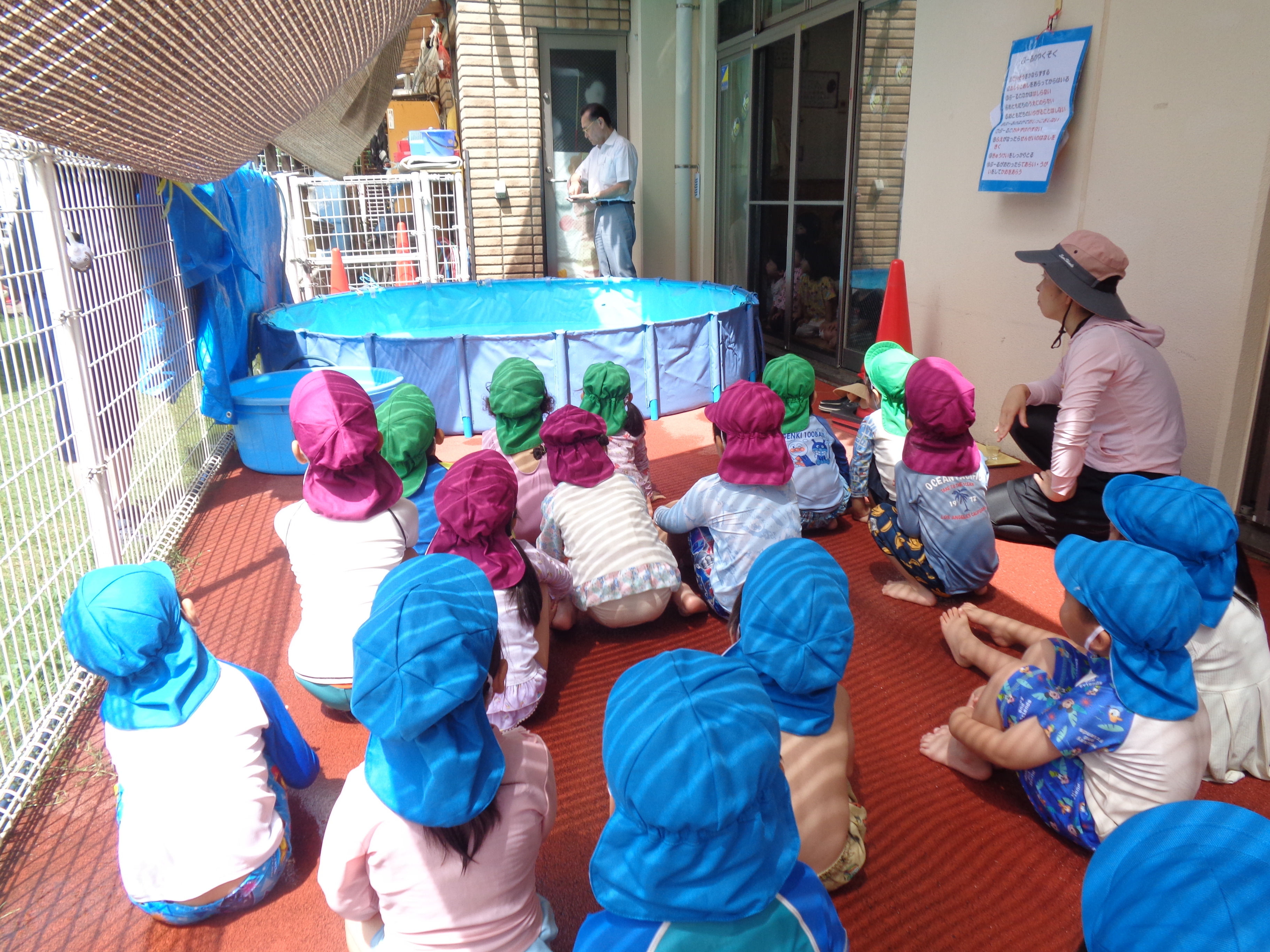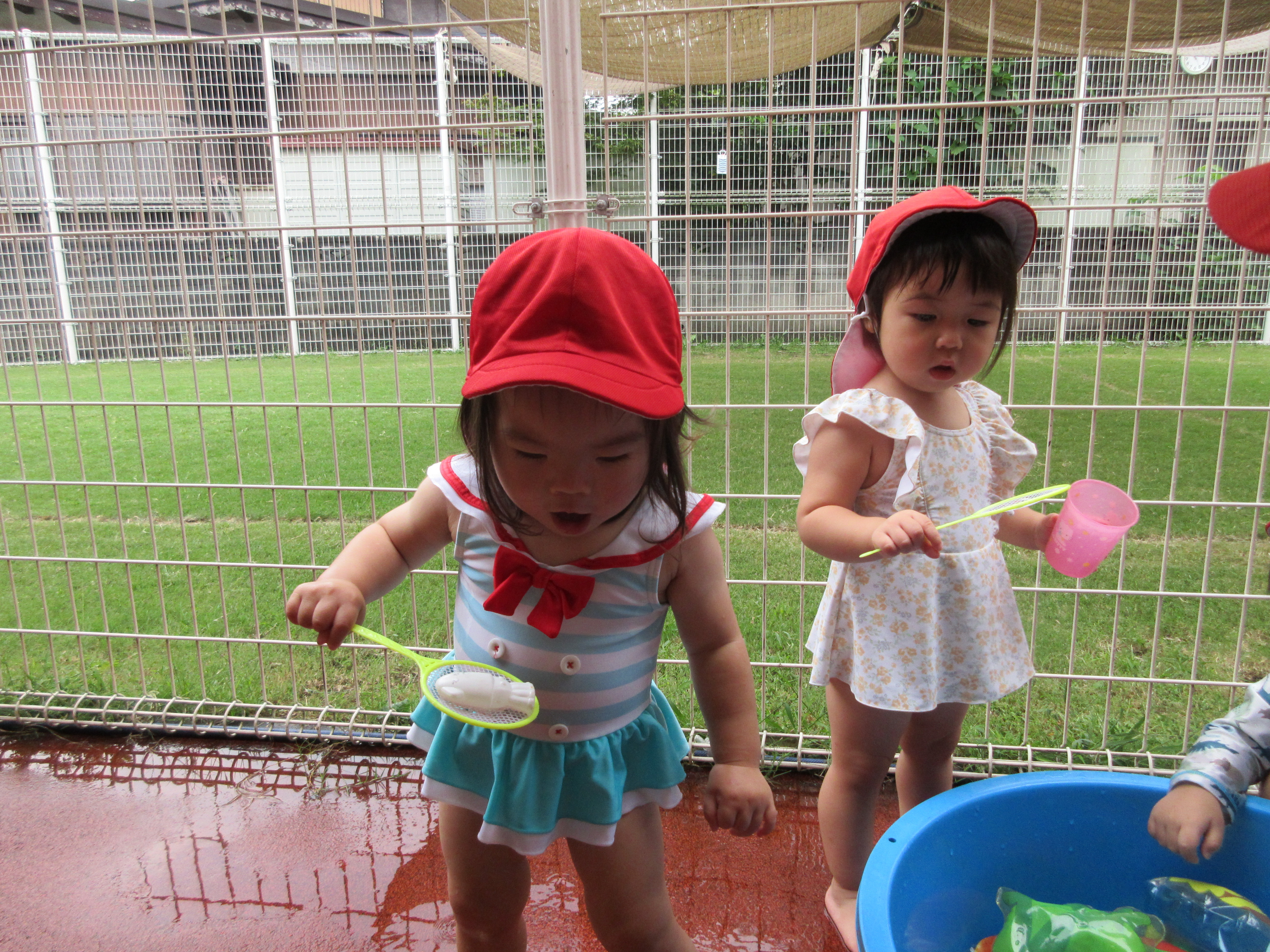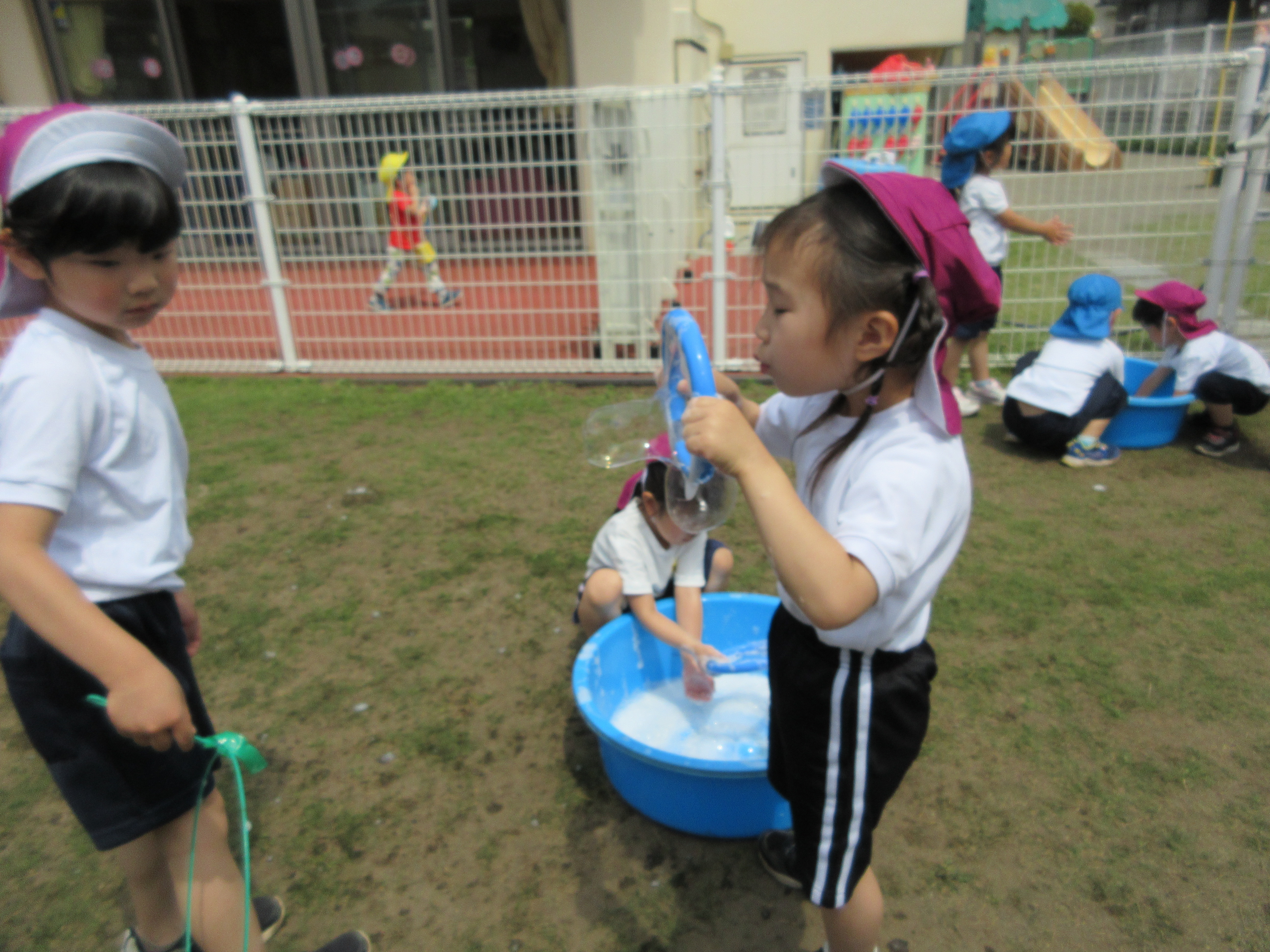 プール、水遊び、泥んこ遊び、寒天遊び、色水遊び、シャボン玉、フィンガーペインティング、ボディペインティングなどなど、子どもたちの笑顔がたくさん見られましたよ。