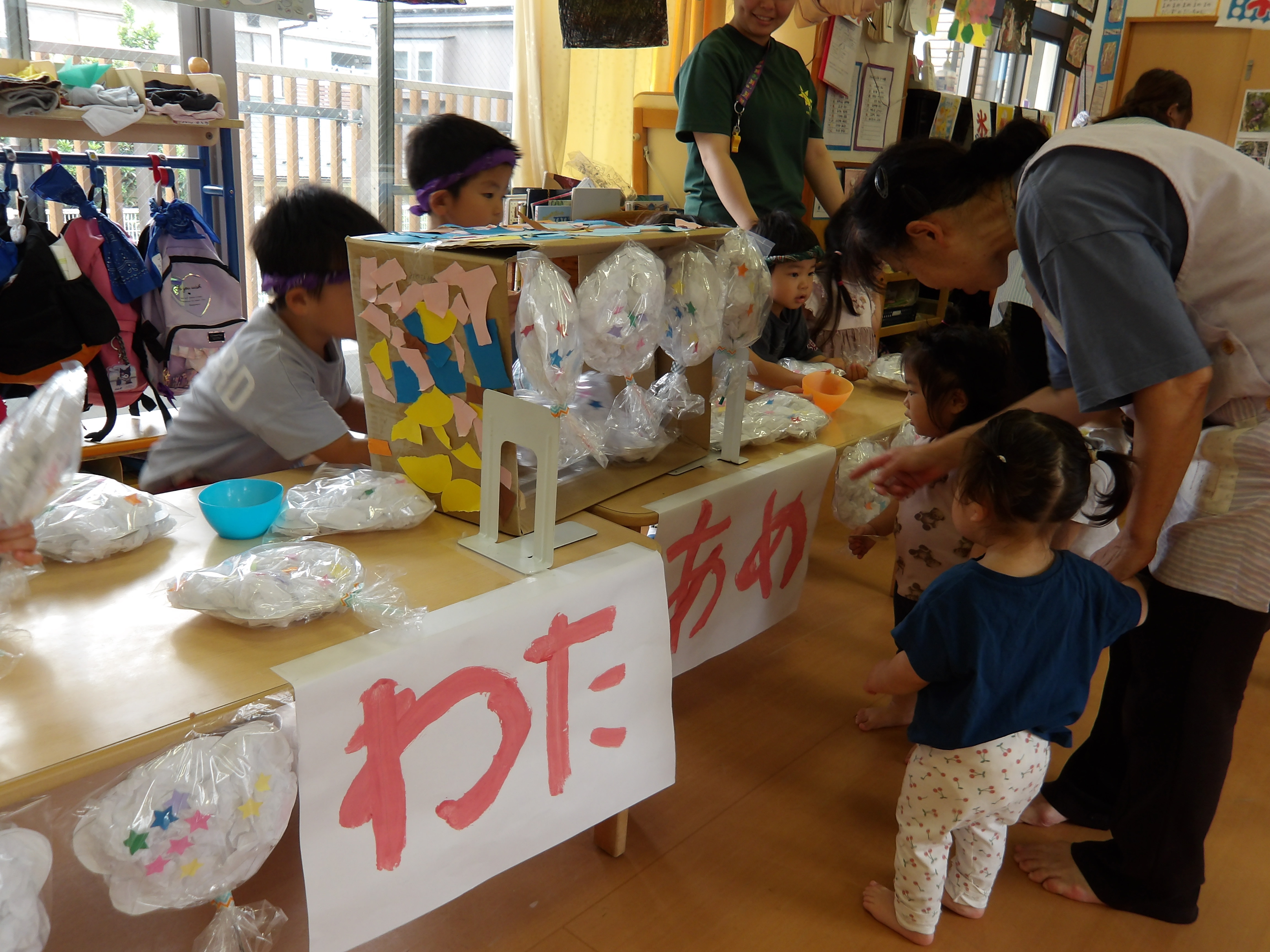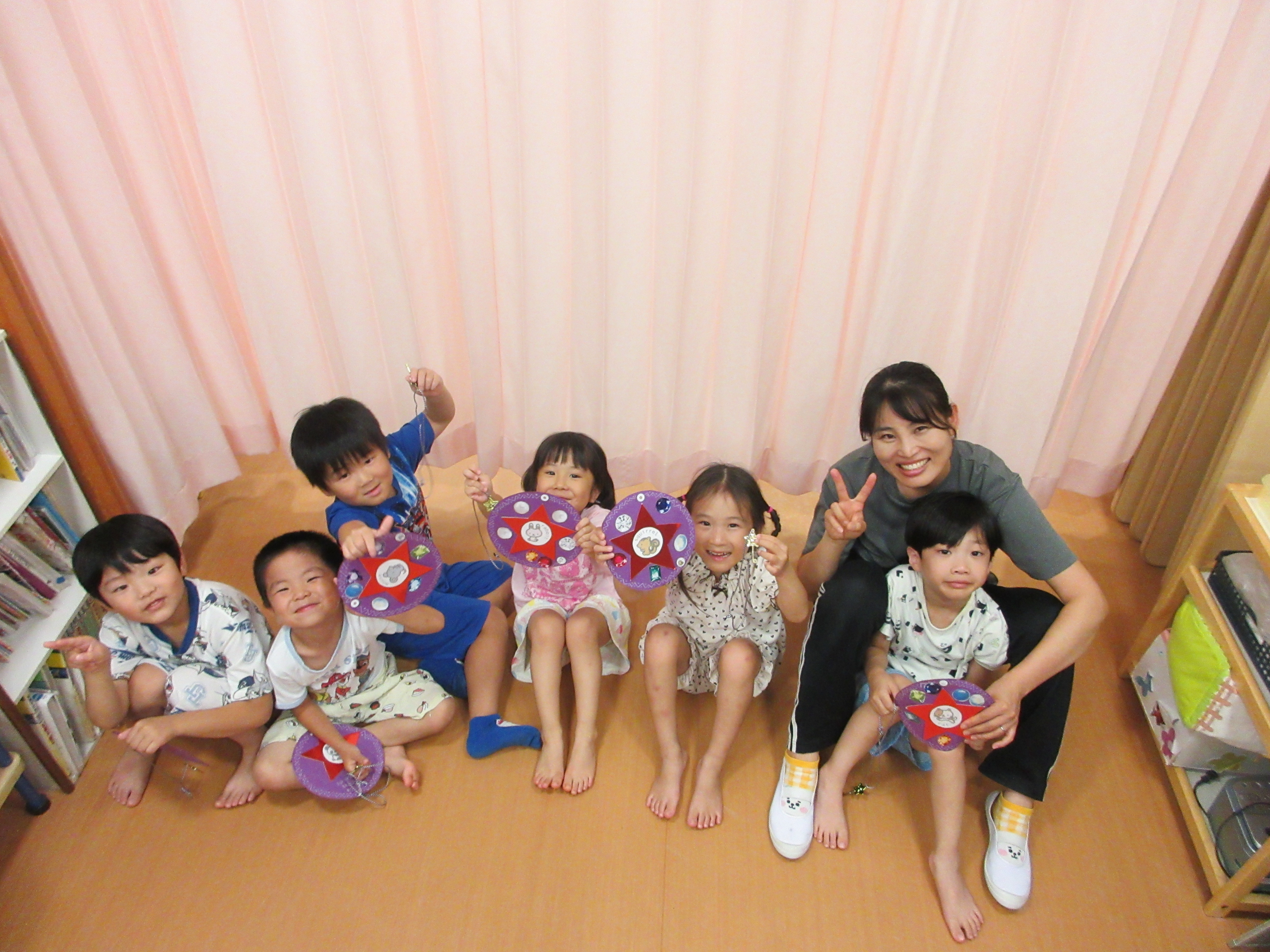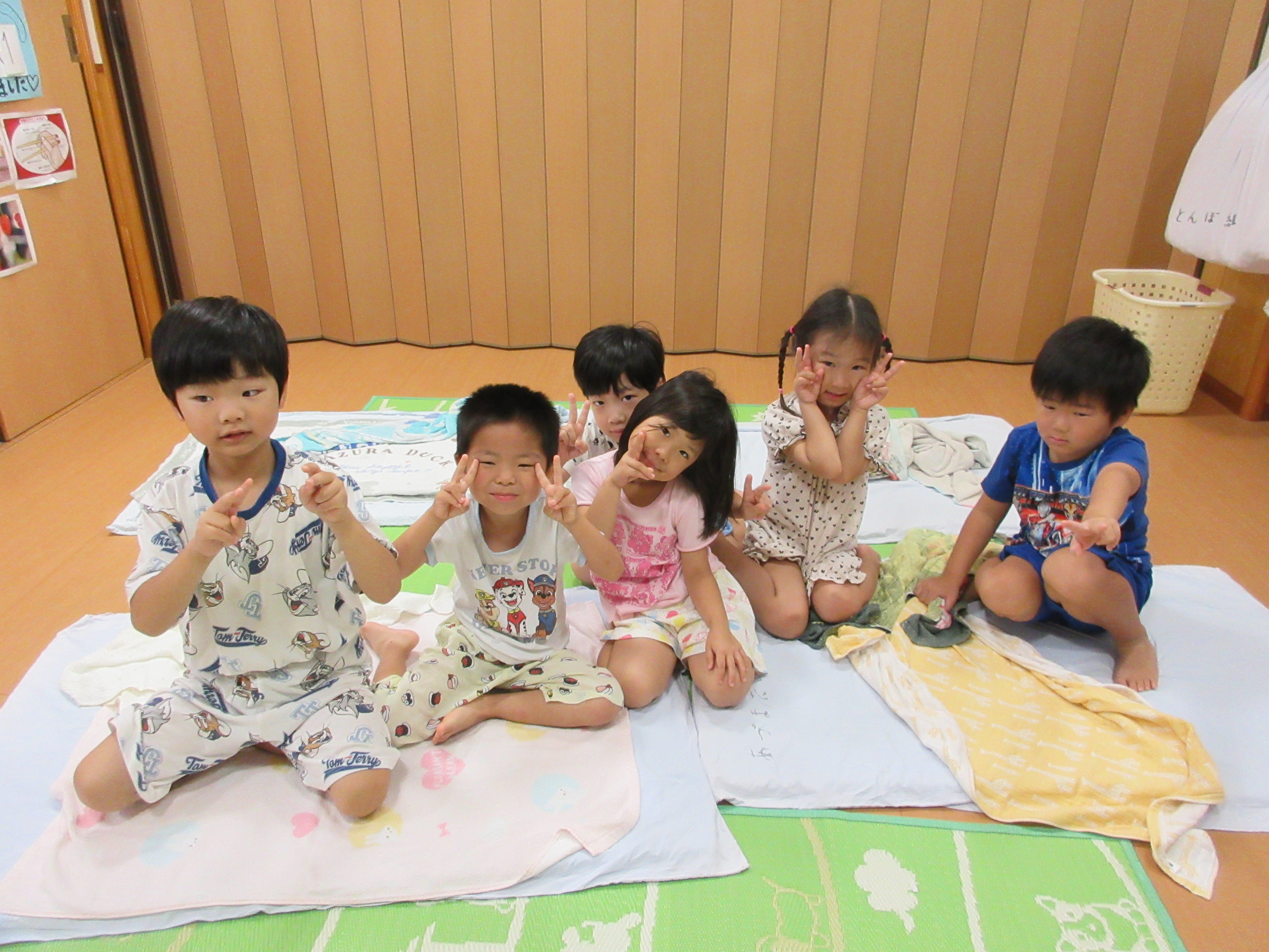 年長のかぶとむし組は、親元から離れ、お友だちや先生と一緒に「お泊り保育」に参加。Tシャツ作りやスイカ割り、夜のお楽しみなどなど、お泊り保育を終えた顔には、成長が見られました。