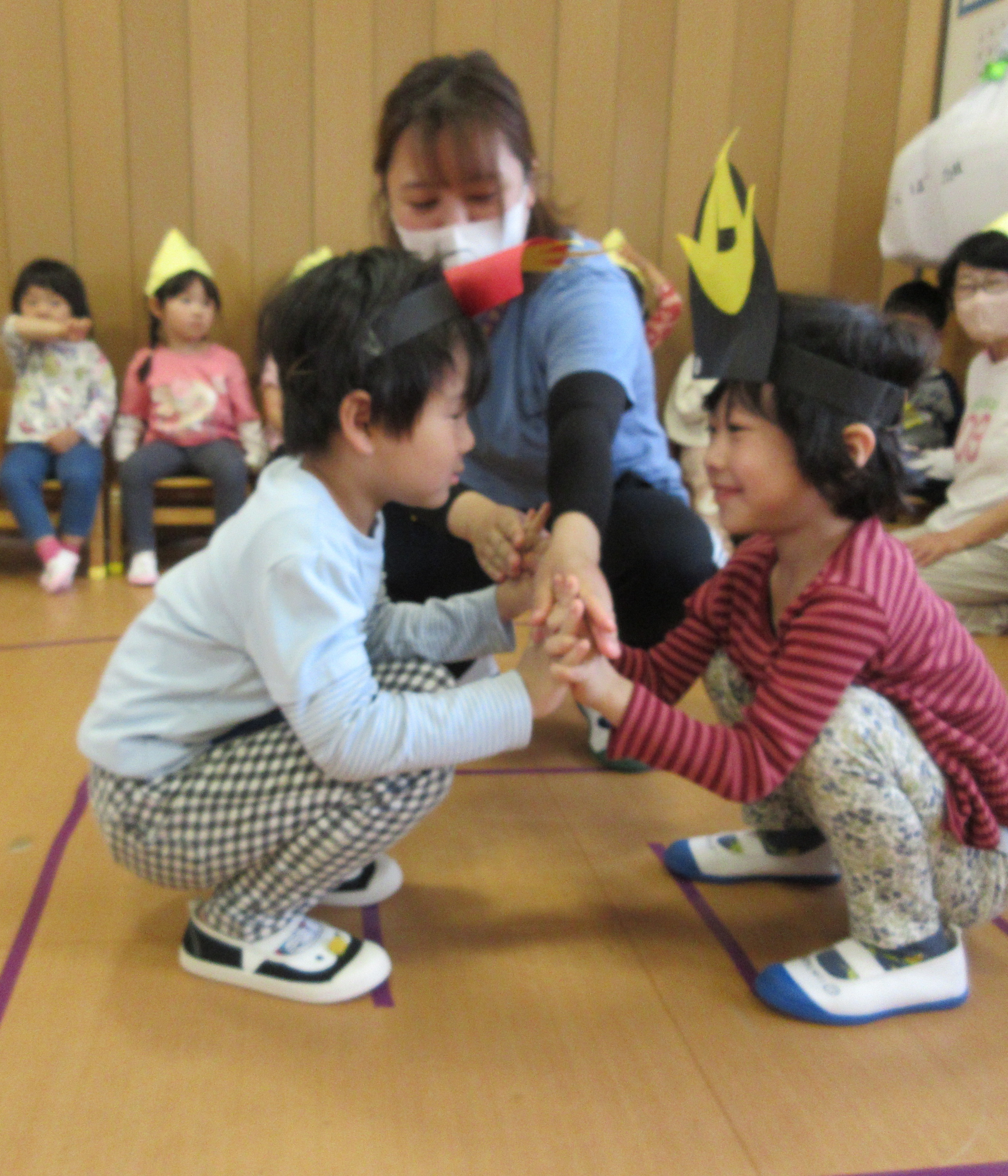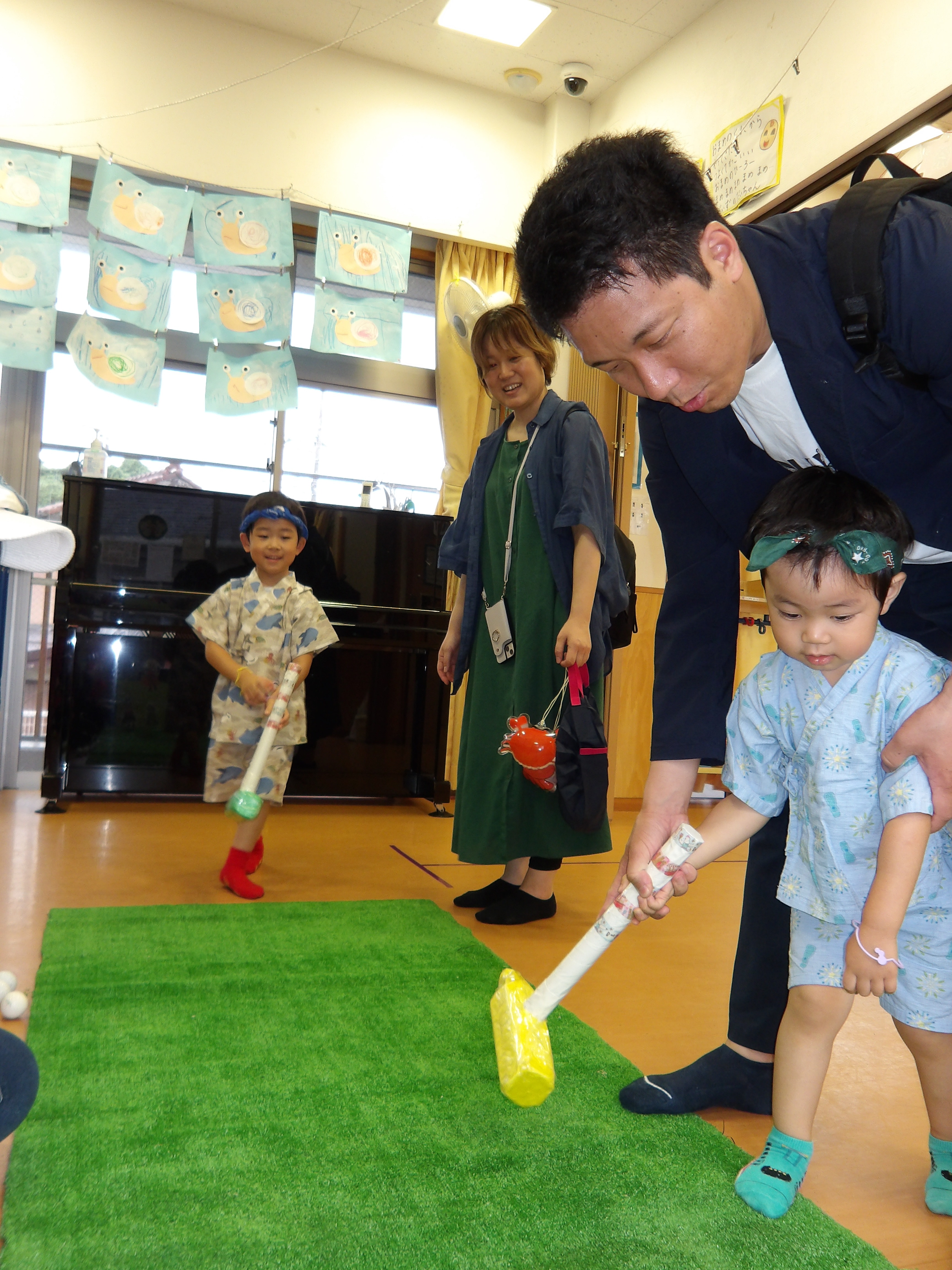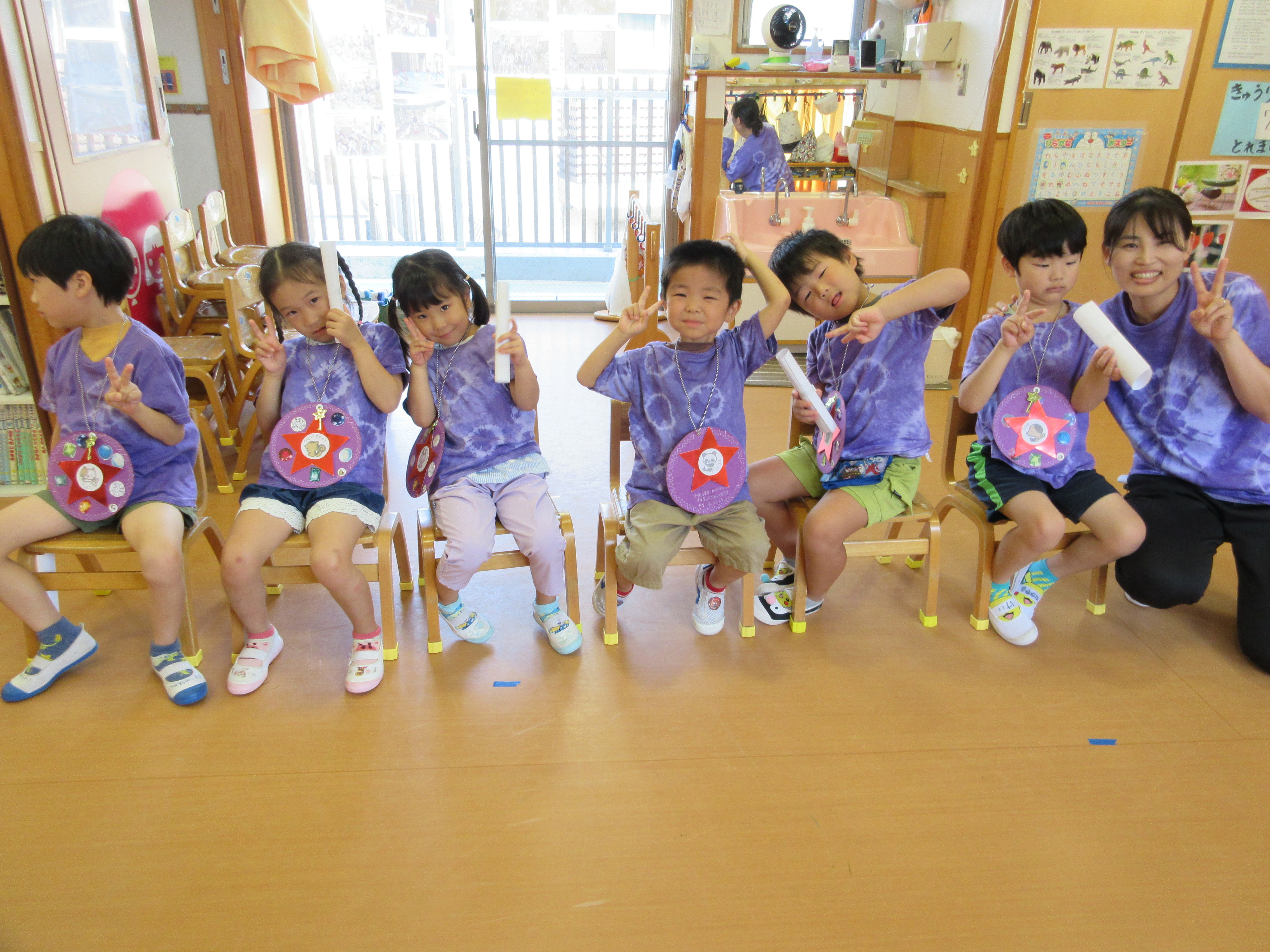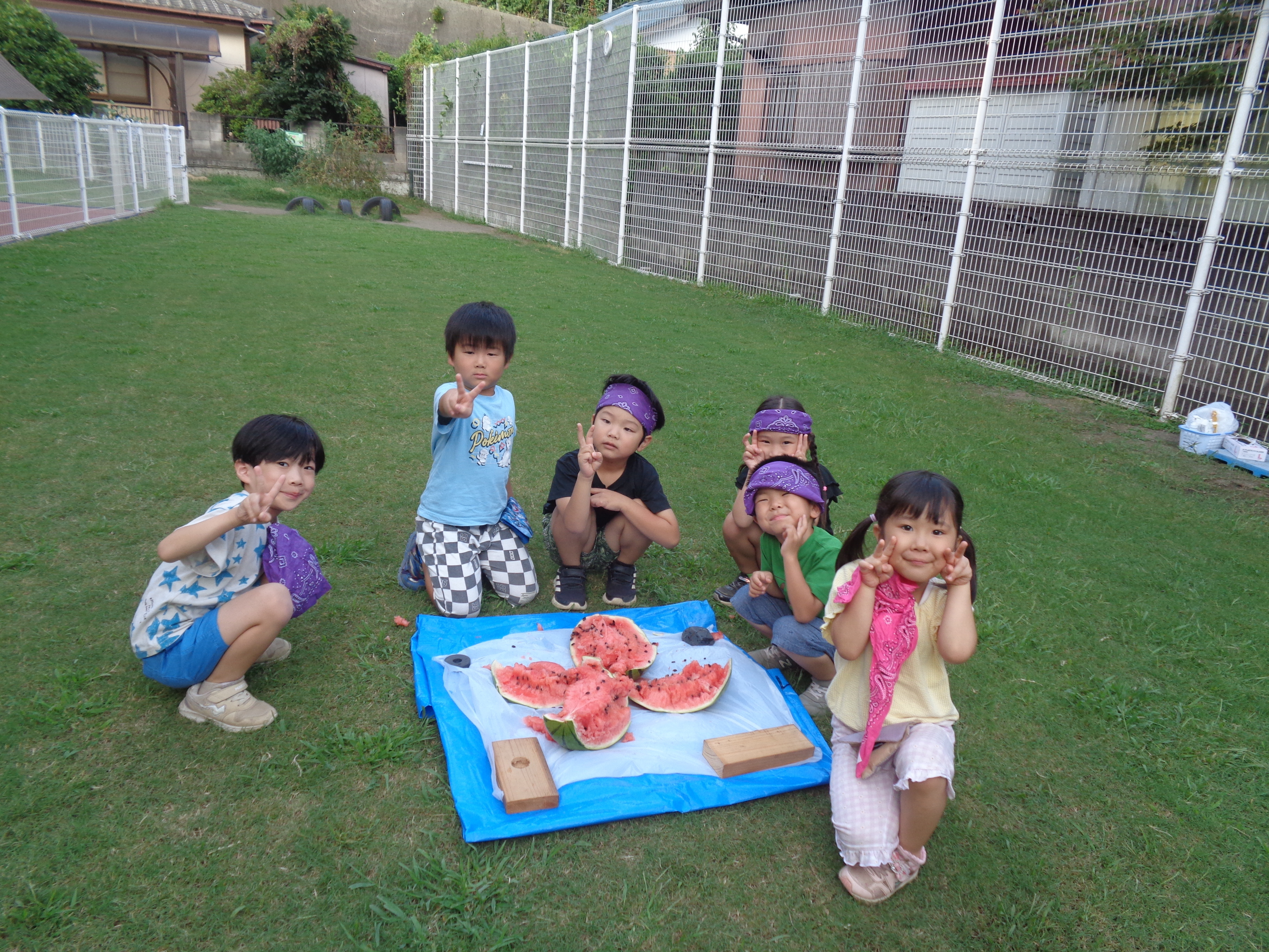 年長のかぶとむし組は、親元から離れ、お友だちや先生と一緒に「お泊り保育」に参加。Tシャツ作りやスイカ割り、夜のお楽しみなどなど、お泊り保育を終えた顔には、成長が見られました。