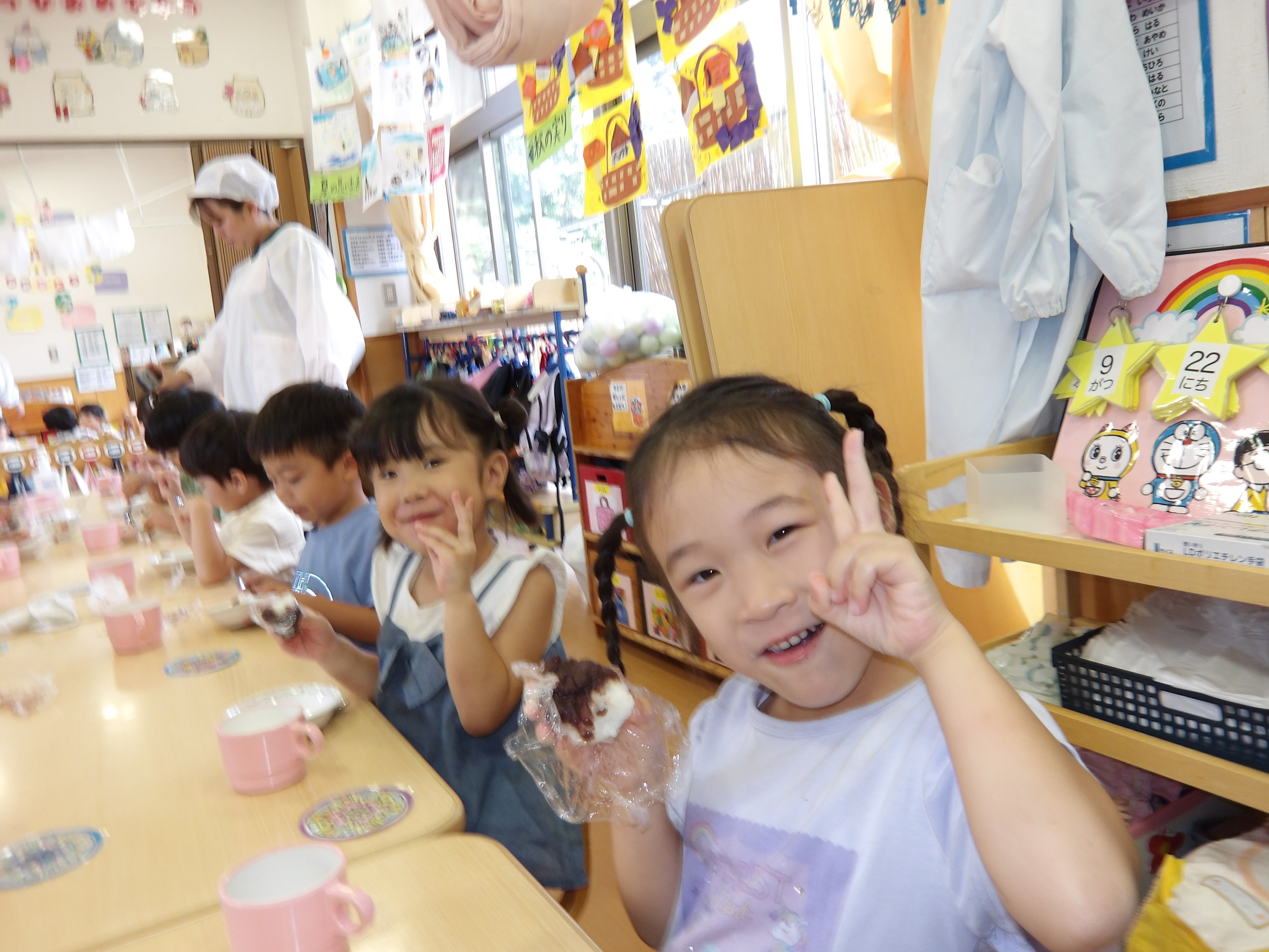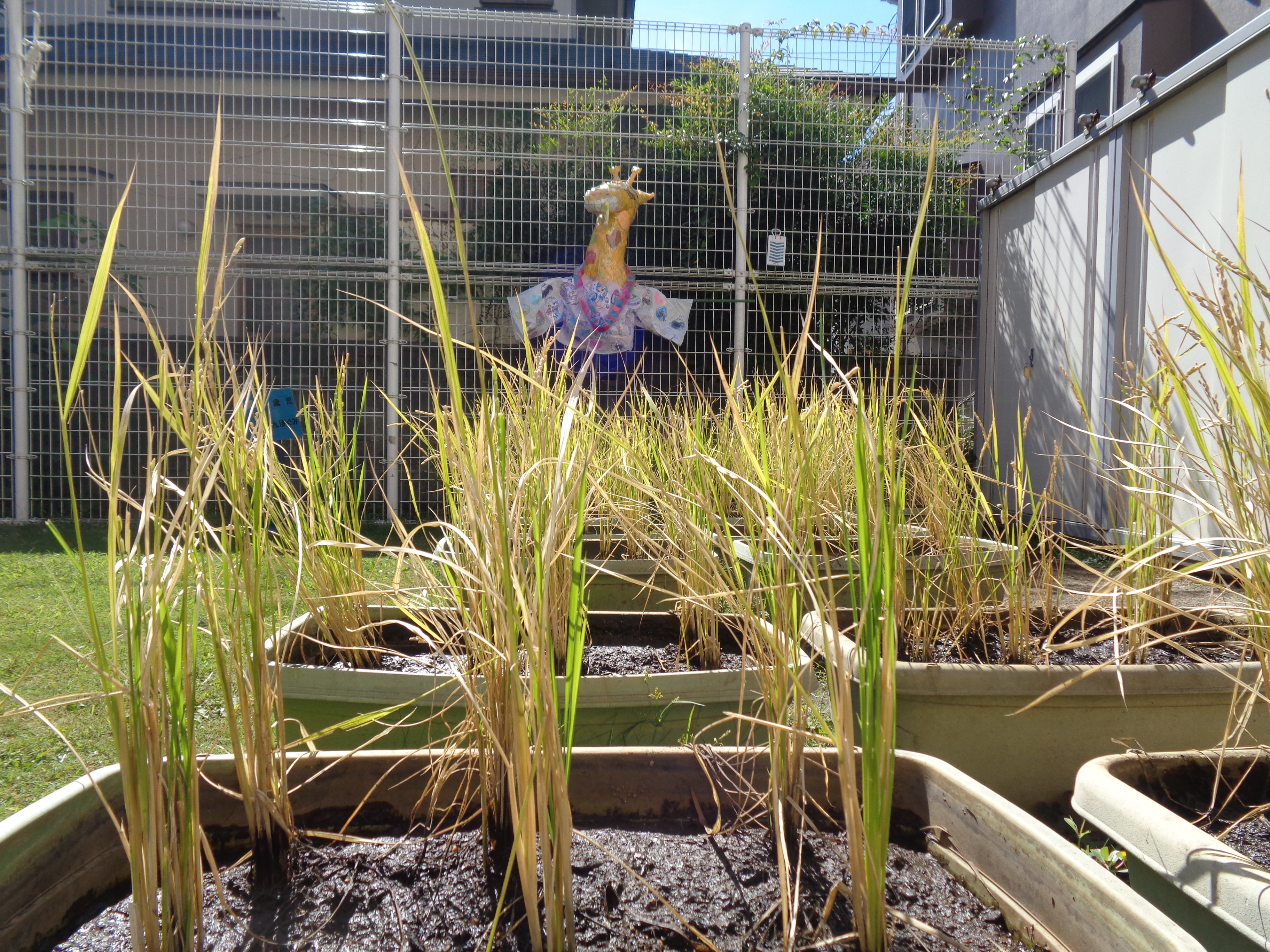 そして季節は秋へと移り変わり、お彼岸の時期には「あずきちゃん」があんこを持ってきてくれて、みんなで「おはぎ」を作って食べました。畑のお米もみんなで作った案山子に守られながら、いよいよ収穫の時期を迎え、これから秋をたっぷりと感じていきたいと思います。